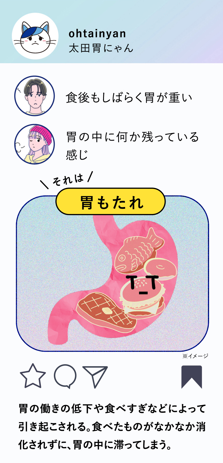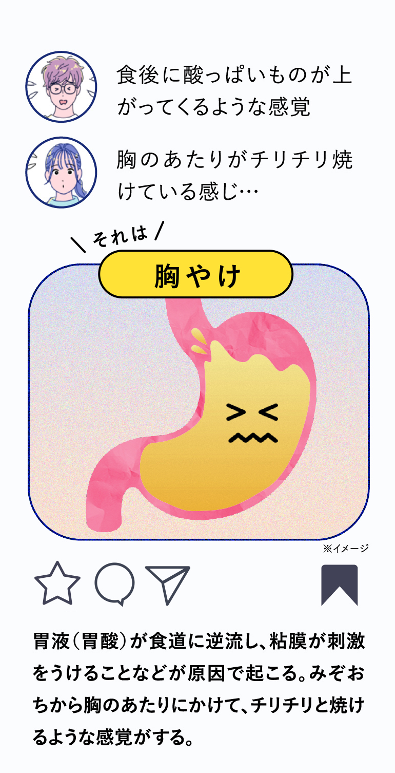 それはもしかして… 胃のお疲れサインかもにゃん!?胃がうまく働けなくなっているとき、体の中では “胃もたれ” や “胸やけ”などの症状が起きているかもしれません。